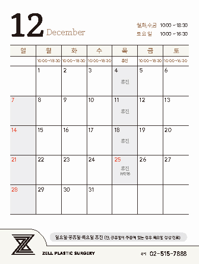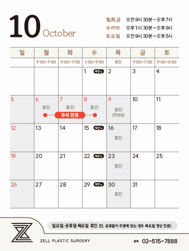 *목요일 정기 휴진 (단, 공휴일이 주중에 있는 경우 목요일 정상진료)